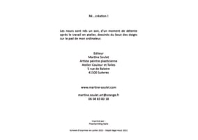Graphes informatiques. Réalisés du bout des doigts glissant sur le pavé tactile au gré d’une pensée vagabonde, ils tracent, gribouillent… Des formes apparaissent, la couleur s’en mêle. Fleurs ? Anecdotes ? Poésie ? Chacun d’eux réalisé dans un joyeux « lâcher prise » qui s’apparente à la méthode de création de mes toiles. Deviendront-ils tissu ? Papier-peint ? Art de la table ? Ou resteront-ils image d’un instant ?